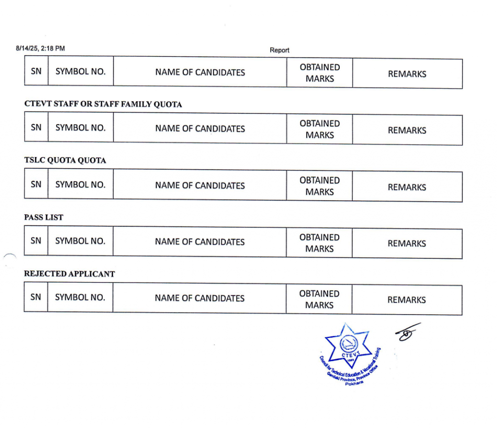 २४ महिने प्री-डिप्लोमा औधोगिक प्रशिक्षार्थी (एप्रेन्टिसिप्) होटल म्यानेजमेन्ट कार्यक्रमको प्रवेश परीक्षाको नतिजा प्रकाशन भएको बारे सुचना