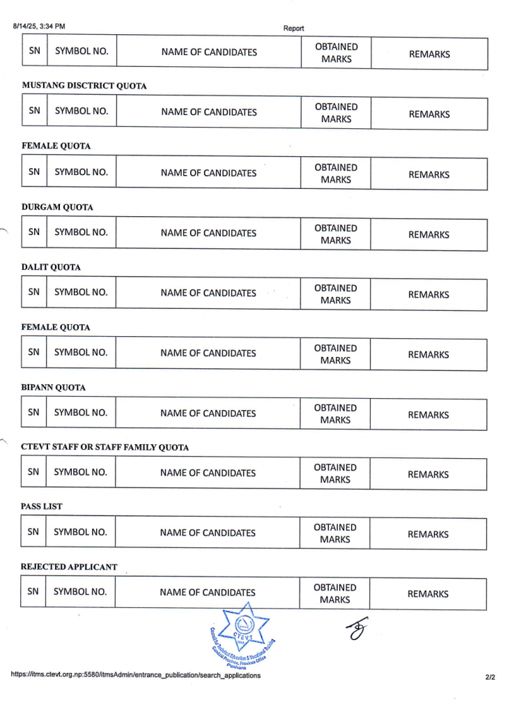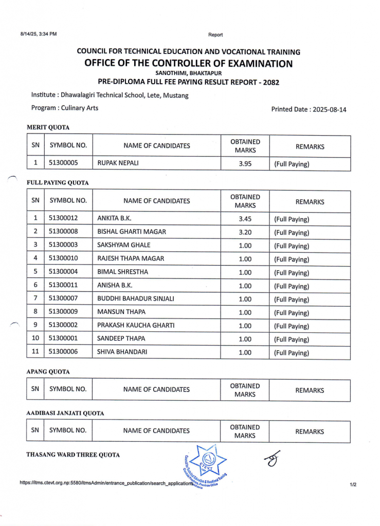 डिप्लोमा तहको डिप्लोमा इन होटल म्यानेजमेन्ट कार्यक्रमको वर्गीकृत (नि:शुल्क) छात्रवृत्ति तर्फको नतिजा प्रकाशन सम्बन्धी सूचना !!!