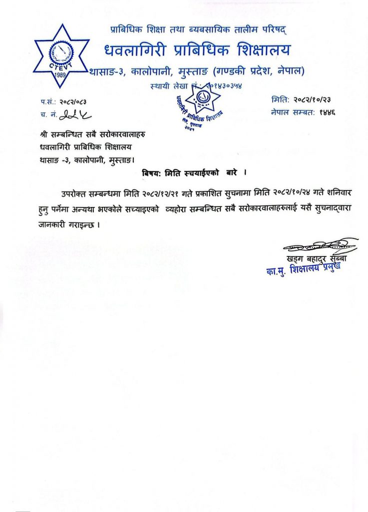 होटेल म्यानेजमेन्ट कार्यक्रमको पास सुचिमा भयका प्रशिक्षार्थिहरुको नतिजा प्रकाशन सम्बन्धि अत्यन्तै जरुरि सुचना!