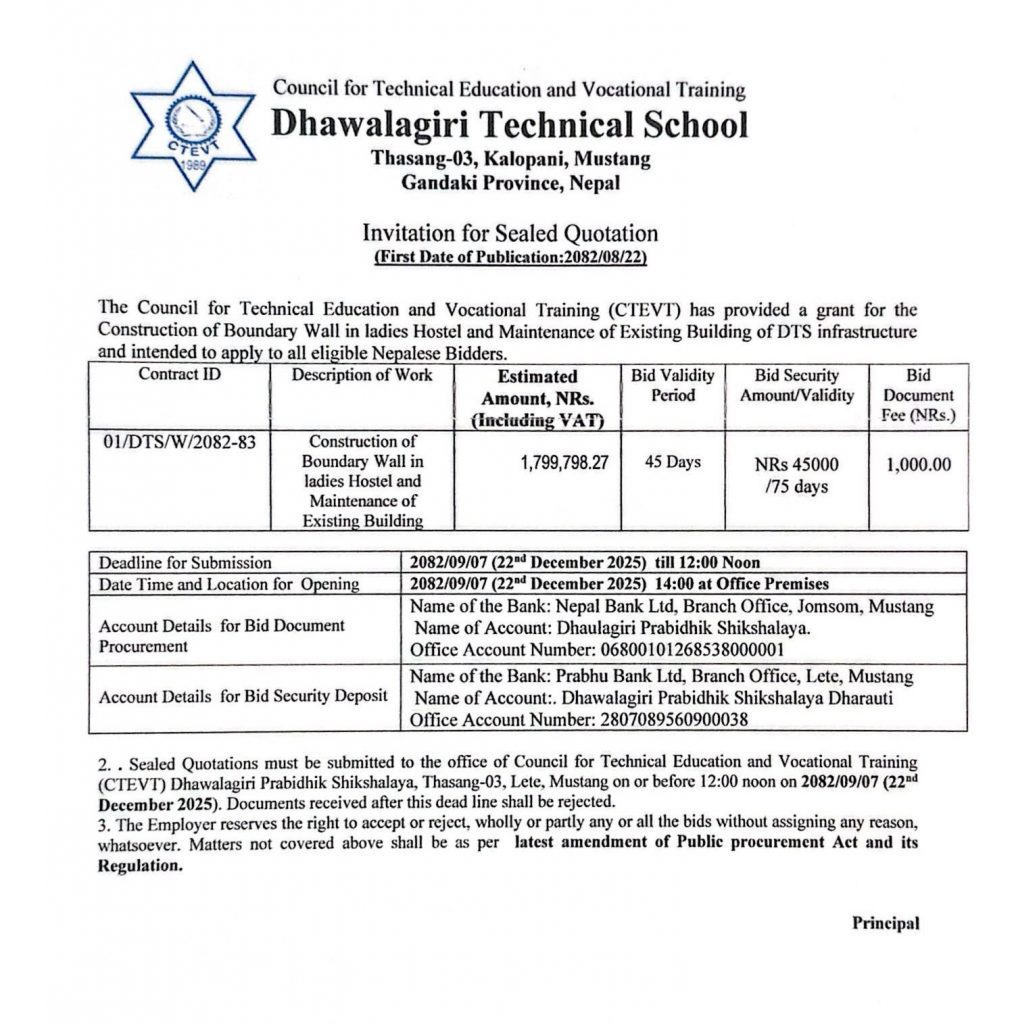 प्रि- डिप्लोमा तहको अैाधिगिक प्रशिक्षार्थि तालिम कार्यक्रममा निशुल्क प्रशिक्षणका लागि आवेदन फारम भर्ने सम्बन्धि सुचना!