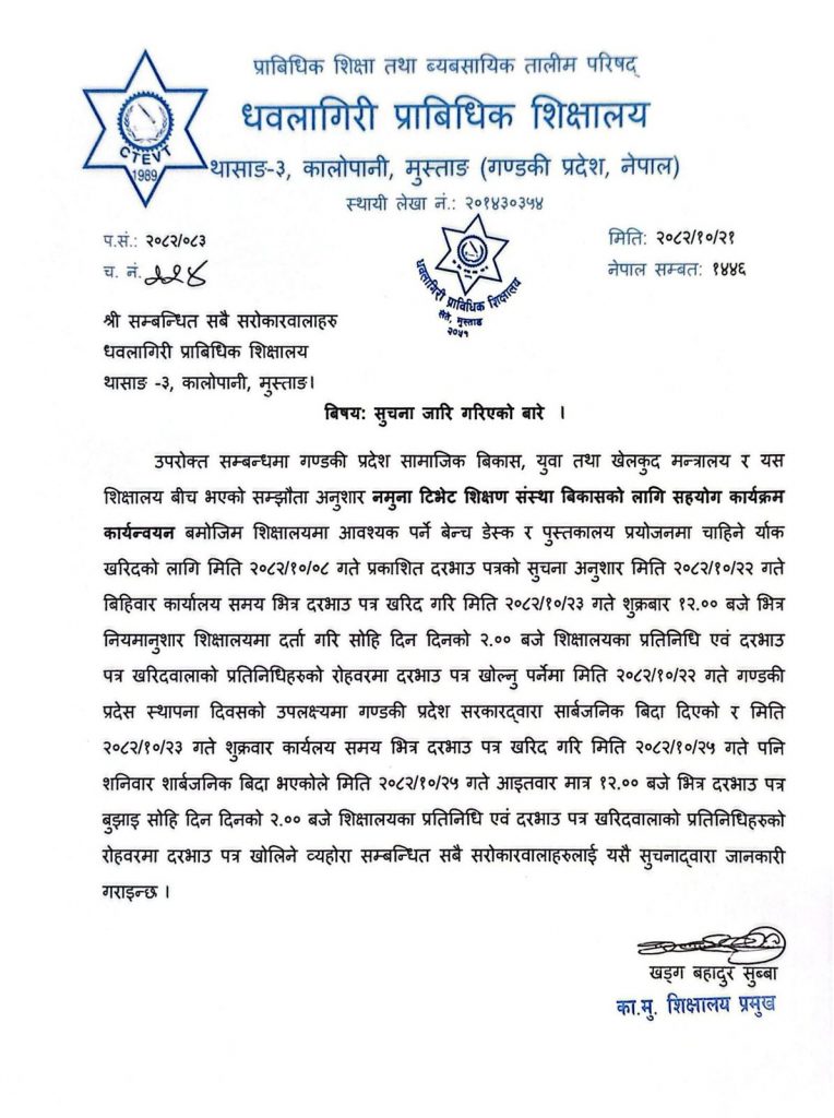 तालिम स्थगित गरियको बारे सुचना